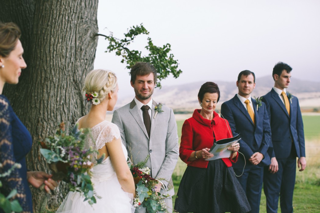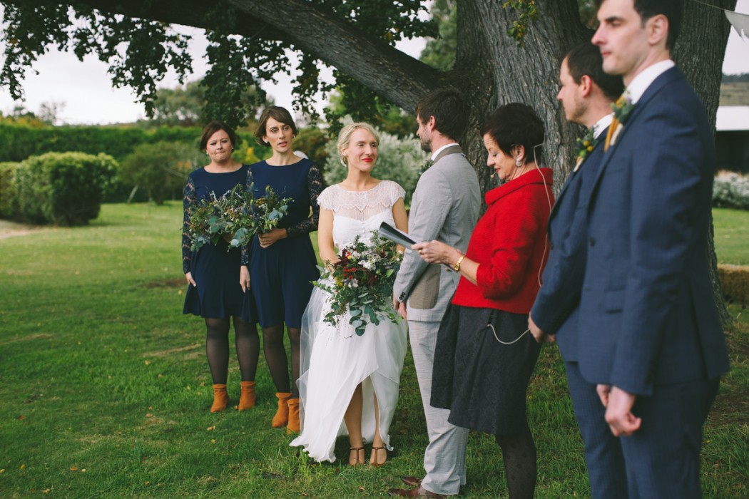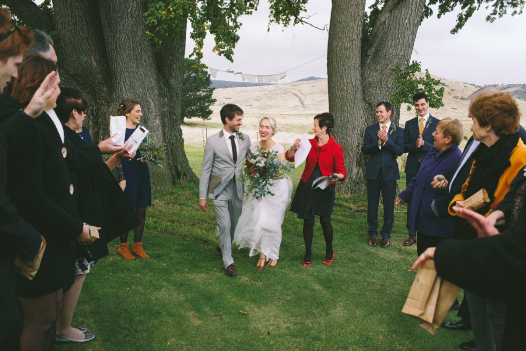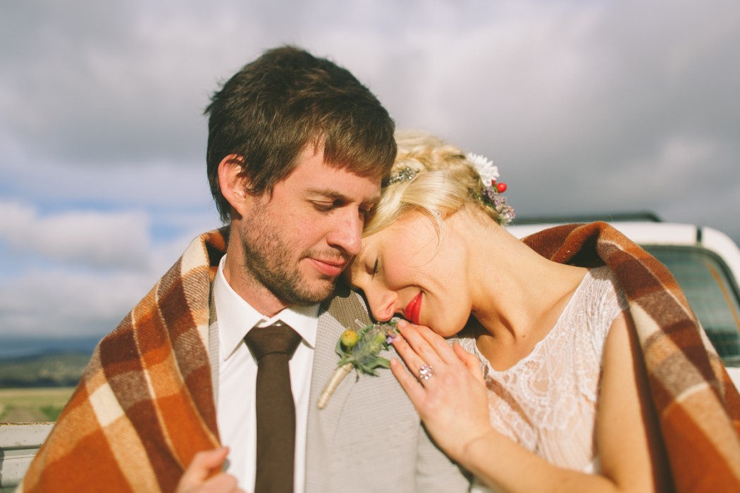 The amount of warm and fuzzies we got from hanging with these two certainly tamed the wintery weather chills during this Tassie wedding :) Just about smack bang in the middle of our state, amongst the rollings hills and friendly sheeps, Emma + Troy invited their loved ones to a private property for a weekend of awesome! The fog settled and the winds blew, but nothing could stop the love bursting through. It twas the prefect ending to our Wedding season :)