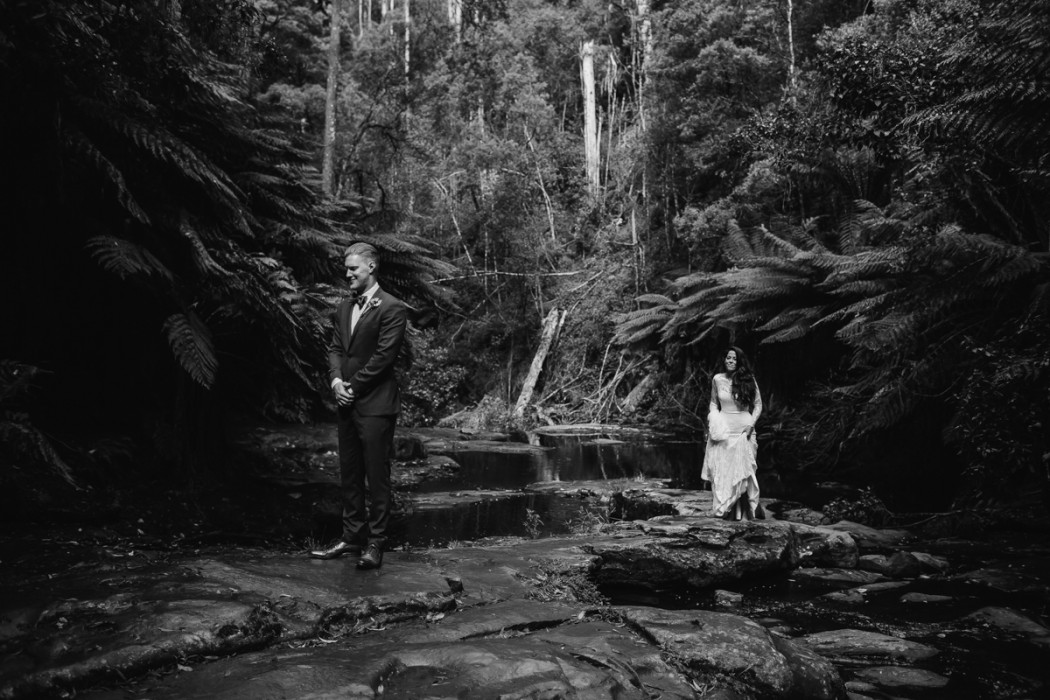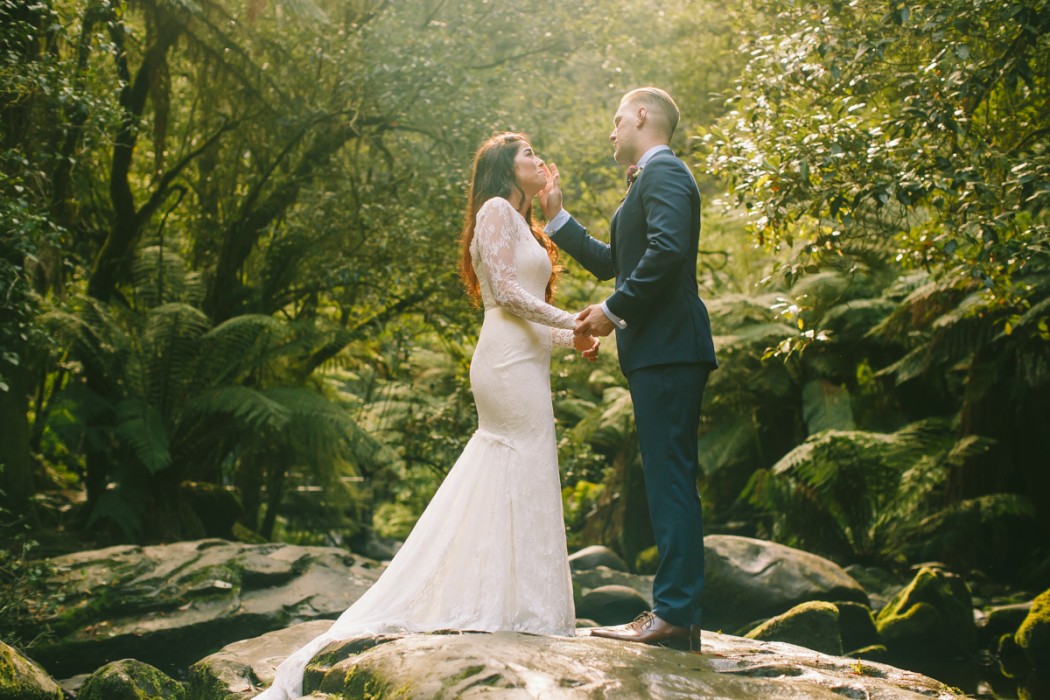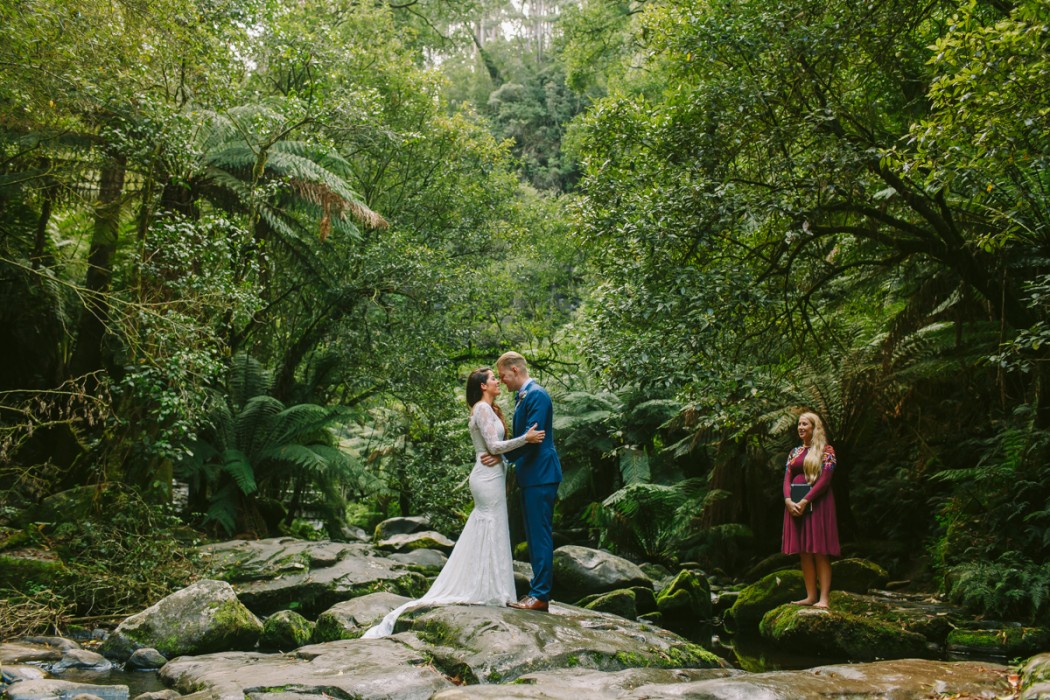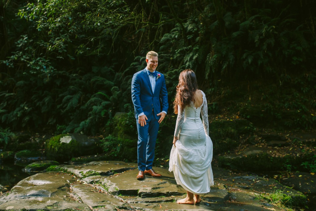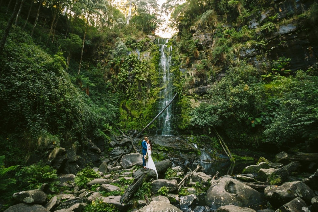 The incredible Erskine Falls in Lorne Victoria was the backdrop for this destination wedding. With the cascading waterfall and native forest in front of us, this loved up couple exchanged their hand written vows with honesty and kindness of high school sweet hearts. We had lumps in our throats. We were pinching ourselves. Immersed in a rainforest off the Great Ocean Road, we couldn’t help but feel that the universe had well and truly dealt us a winning hand with these two. One word. Epic.