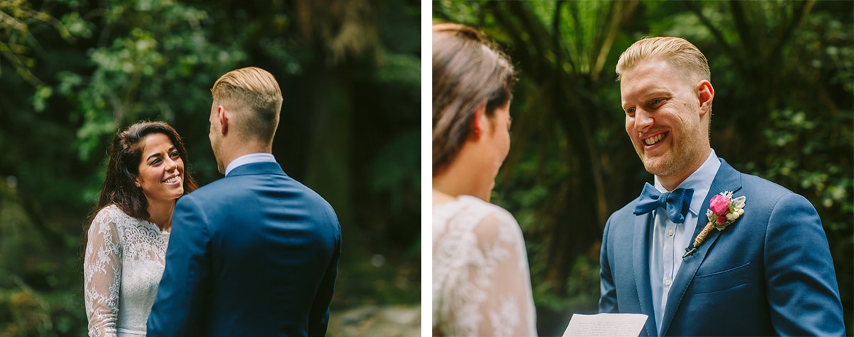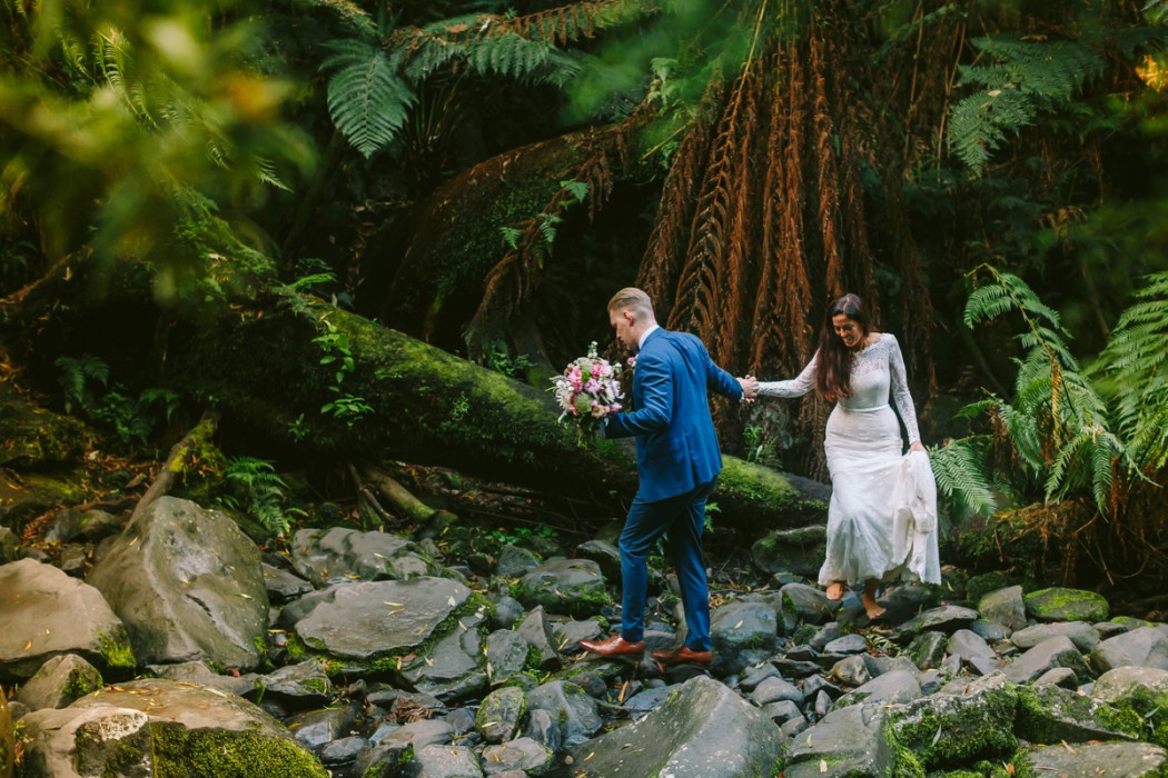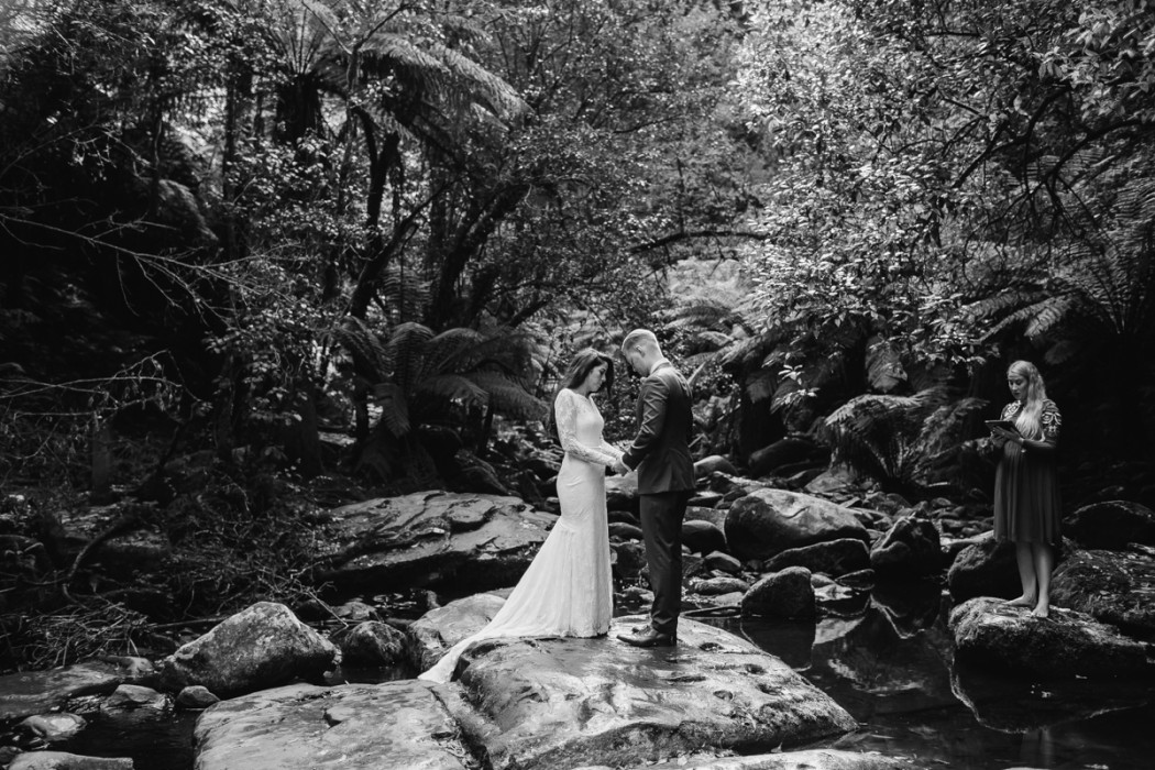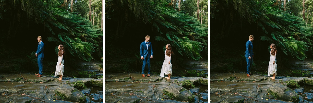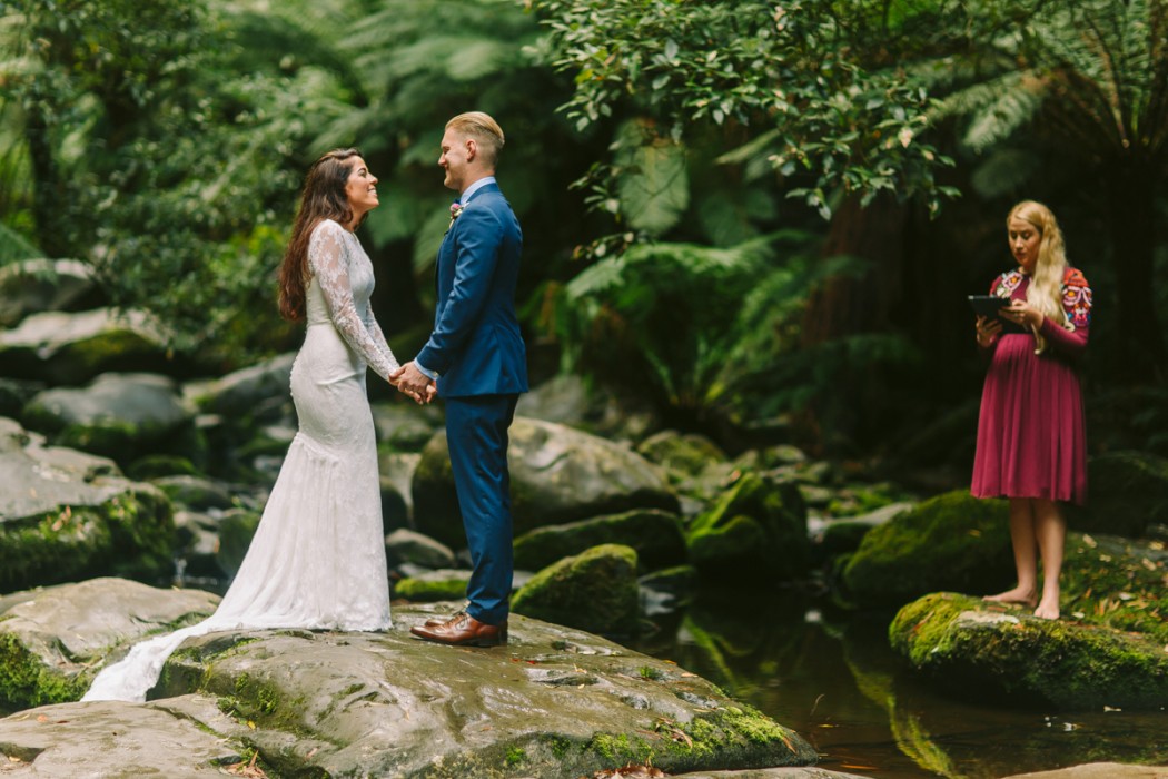 The incredible Erskine Falls in Lorne Victoria was the backdrop for this destination wedding. With the cascading waterfall and native forest in front of us, this loved up couple exchanged their hand written vows with honesty and kindness of high school sweet hearts. We had lumps in our throats. We were pinching ourselves. Immersed in a rainforest off the Great Ocean Road, we couldn’t help but feel that the universe had well and truly dealt us a winning hand with these two. One word. Epic.